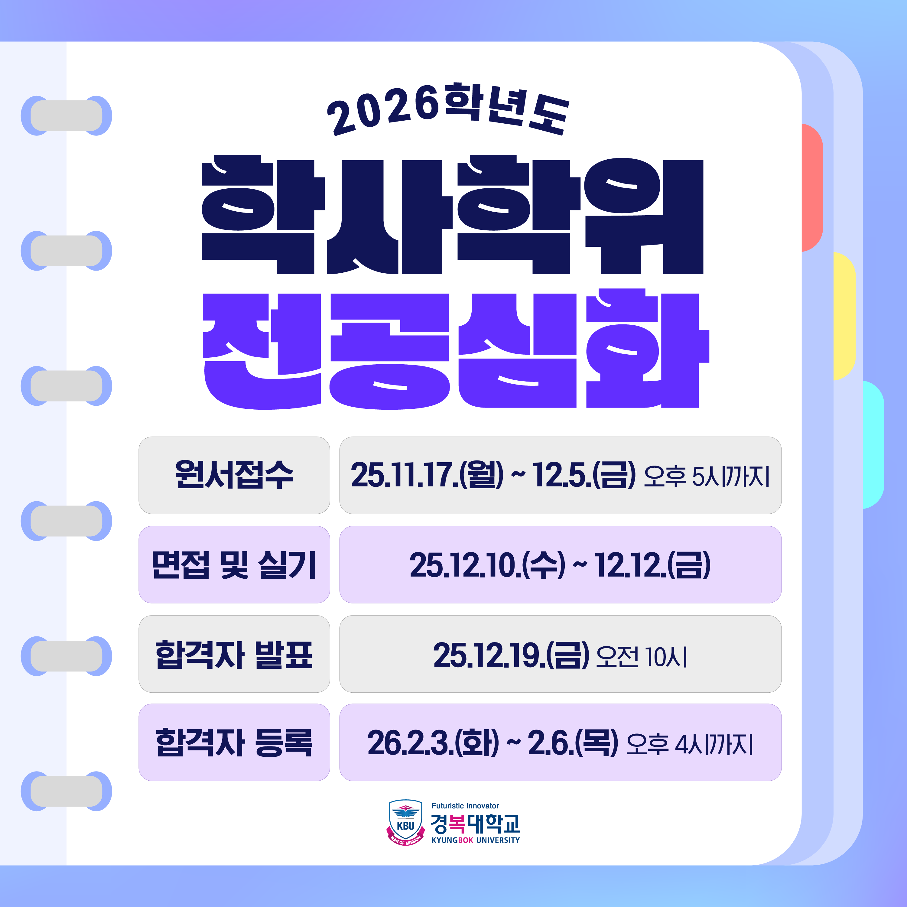정시모집 잠재력을 전문가로, 경복대학교 정시모집 정시모집 모집요강 입시일정 입시결과 원서접수 지원현황 공지사항 입학상담 입시일정 2875년 2876 2877년 전체 01월 02월 03월 04월 05월 06월 07월 08월 09월 10월 11월 12월 월간일정 연간일정 2876년 8월 학사일정 달력으로 일별 일정 제공 일 월 화 수 목 금 토 SUN MON TUE WEN THU FRI SAT 1 2 3 4 5 6 7 8 9 10 11 12 13 14 15 16 17 18 19 20 21 22 23 24 25 26 27 28 29 30 31 상기 일정은 사정에 따라 변경 될 수 있습니다.
